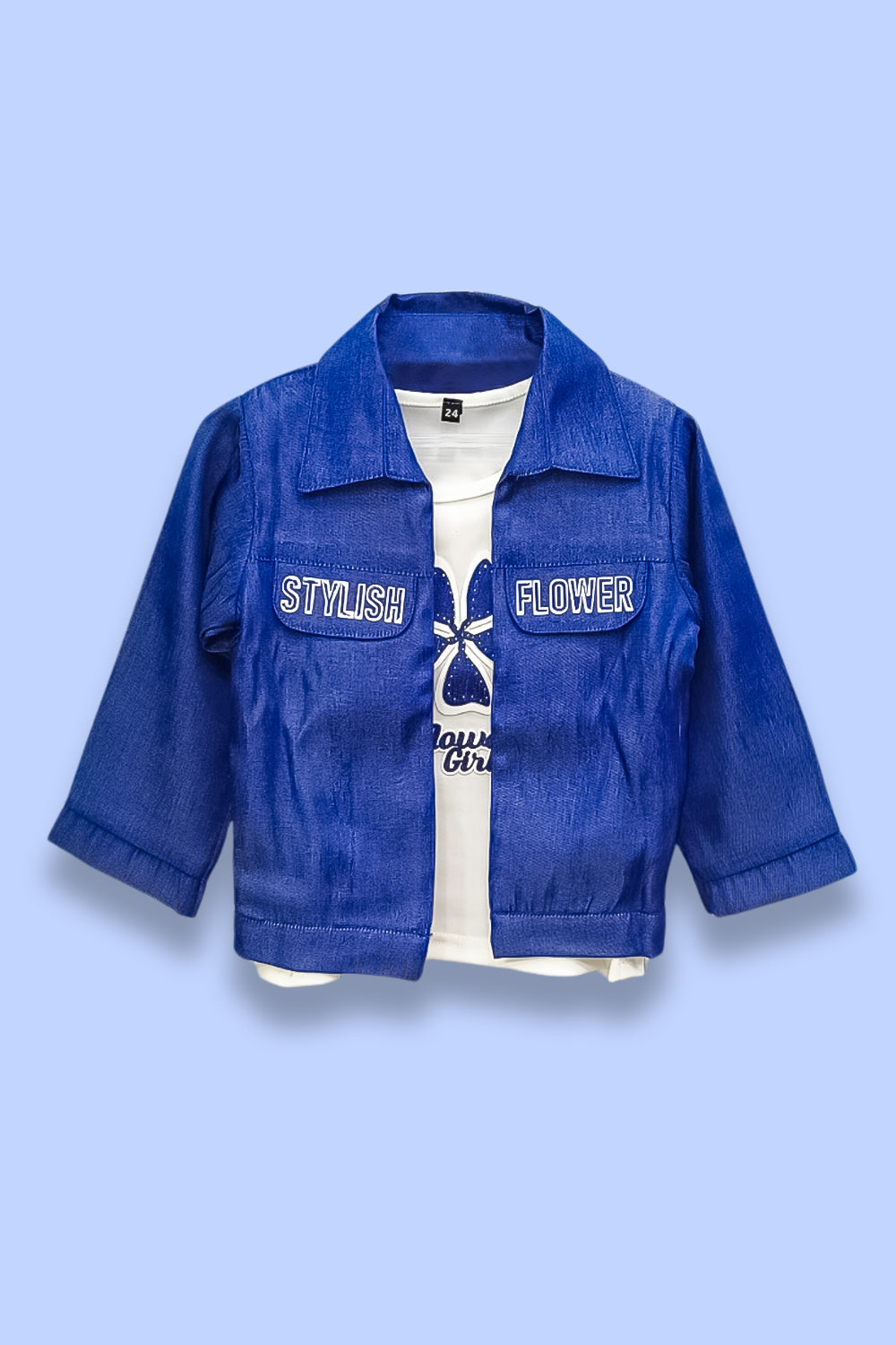 Let your little fashionista shine bright with this Stylish Flower Denim Co-Ord Set — a perfect blend of comfort and trend!